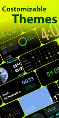 • Always‑On Study Clock – keep time visible without screen‑off interruptions. variety of clock faces such as Minimal, bold, analog, windows segment, etc.